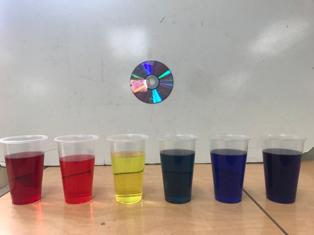 In addition to taking the pretest, students tried to figure out the magic cd. The demonstration that was performed in class made it seem like the cd was able to separate each of these colors by pouring water over it. It was a great demo, and the students are really thinking about how it could have been done!